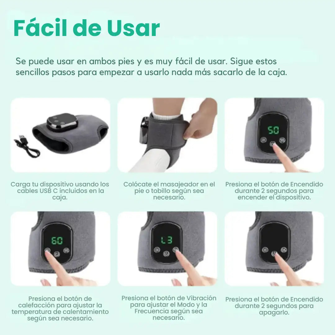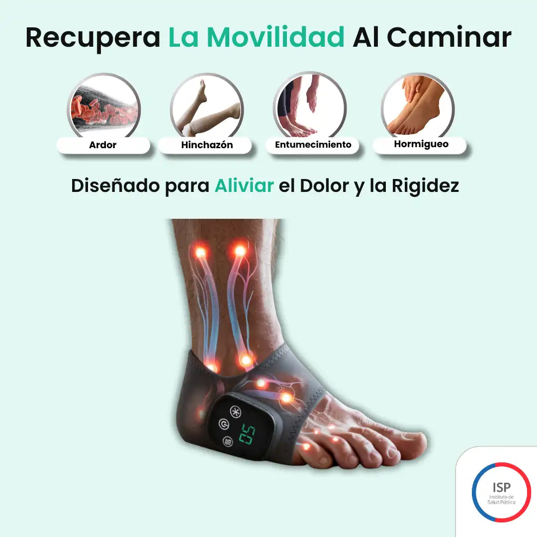 Utiliza EMS (Estimulación Muscular Eléctrica) segura y dirigida para despertar suavemente los nervios y músculos debilitados. Esto puede ayudar a reentrenar tu cuerpo para levantar el pie de forma natural, mejorar la circulación y reducir la rigidez con el tiempo.