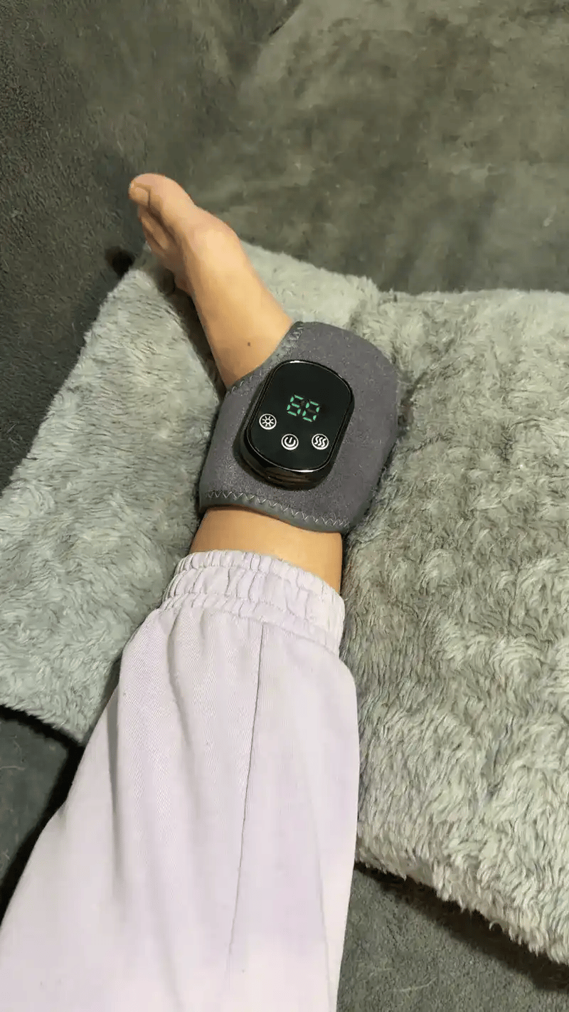 - Paso 2: Colocación: Coloque la banda Soothea firmemente alrededor del pie o tobillo, ajustando el velcro según sea necesario para asegurar un contacto completo con la piel.